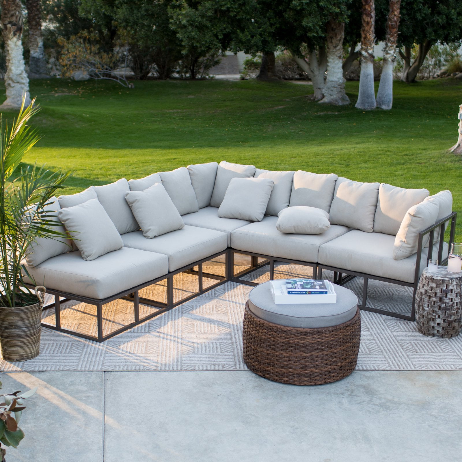 Homall 4 pieces outdoor patio furniture sets rattan chair wicker set, outdoor indoor use backyard porch garden poolside balcony furniture sets clearance (brown and beige). Including covers for two corner sofa pieces. Belham living bonaire aluminum 3 piece outdoor sectional.