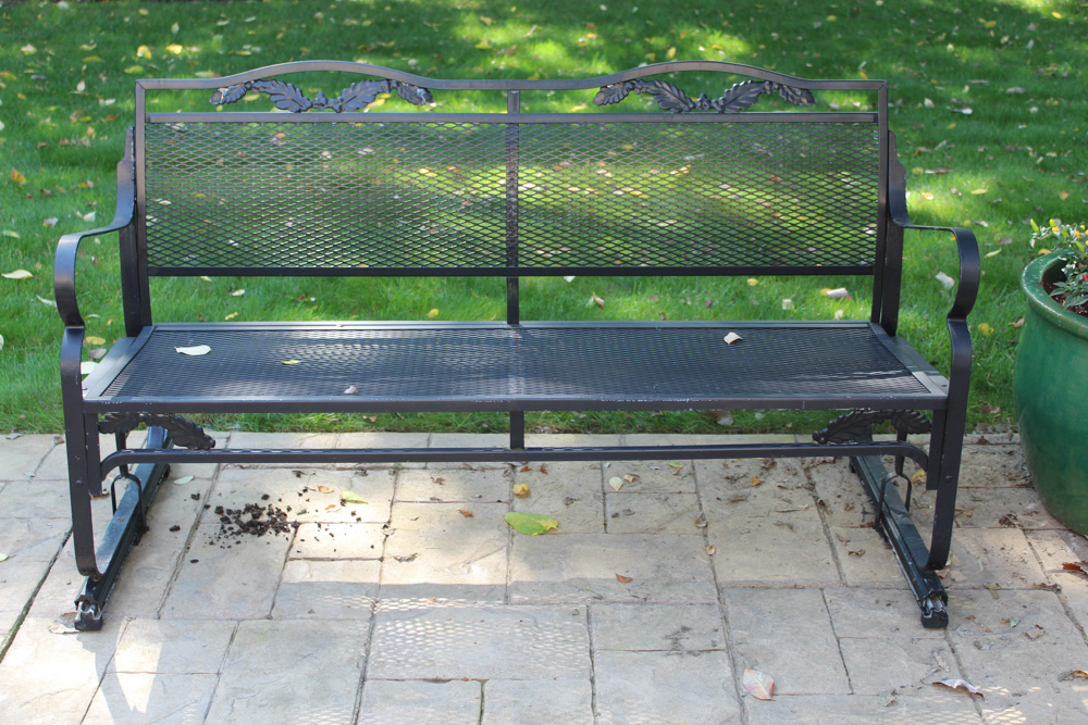 Black Outdoor Glider Bench. Find the perfect patio furniture & backyard decor at hayneedle, where you can buy online while you explore our room designs and curated looks for tips, ideas & inspiration to help you along the way. 34'' h x 47.5'' w x 29'' d. This is outdoor patio rocking bench loveseat made of steel, this bench is sturdy and durable.