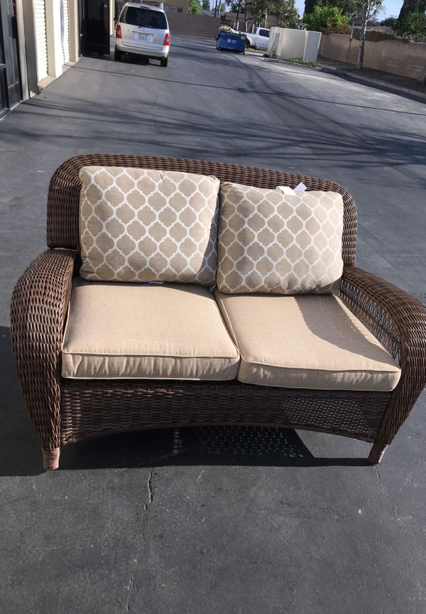 Hampton Bay Wicker Loveseat. 5.0 out of 5 stars. Mix and match outdoor patio loveseat with putty tan cushions: Wicker loveseat hampton bay cambridge patio furniture cambridge brown wicker sunbrella outdoor loveseats aluminum outdoor loveseats.