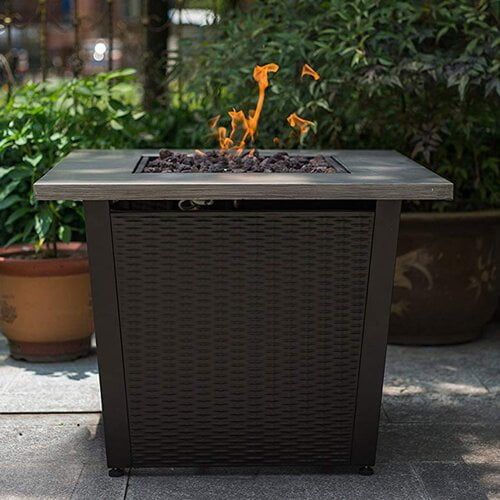 Lava glass, table lid and a protection cover included. A good firepit goes a long way in making your backyard or patio come alive. Legacy heating 28 inch square fire pit ,black wicker looking base, table lid included average rating: This fire pit table came in several pieces requiring some assembly but it wasn't too bad with two people working on it.
