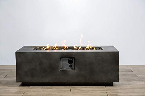 Modern 60 inch rectangle concrete fire table propane or natural gas. The prism hardscapes porto modern rectangle concrete gas fire table. The overall dimensions of the hidden tank fire pit are 35 in square x 26 3/4 tall.