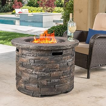Round Outdoor Propane Fire Pit. 4.6 out of 5 stars. Hn outdoor brecksville propane gas fire pit. This wide gas fire pit features a classic stone look to add warmth and a calming atmosphere to your porch, deck, or yard.