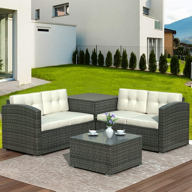 99 £20.00 voucher applied at checkout save £20.00 with voucher Kinbor 4pcs fashion rattan sofa set will perfect for gazebos, pergolas, patio, porch and any other outdoor areas. Roll over image to zoom in.