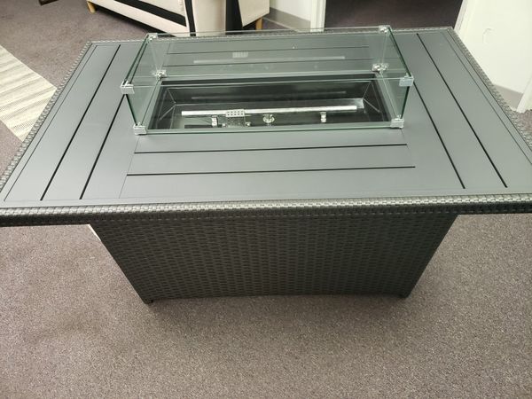 Wicker Propane Fire Table. Fire pit table, glass beads, glass wind guard, protective cover. Ignite countless nights of enjoyment with this versatile fire pit table. It is weather resistant and the decorative base will.