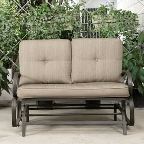 Crestridge steel padded sling outdoor patio glider in putty taupe lounge in leisure with this crestridge steel lounge in leisure with this crestridge steel padded sling outdoor glider. The jackson collection by arlington house offers the classic wrought iron look with quality and comfort. Allen + roth mcaden set of 2 wicker dark brown metal frame swivel glider conversation chair(s) with blue cushioned seat. Sold by ami ventures inc.